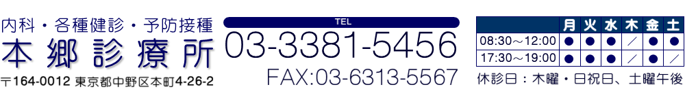 日々の健康相談、区民健診、予防接種をはじめ、高血圧や糖尿病など生活習慣病の治療や検査、必要に応じて大学病院、近隣病院への紹介を行っております。お気軽にご相談ください。